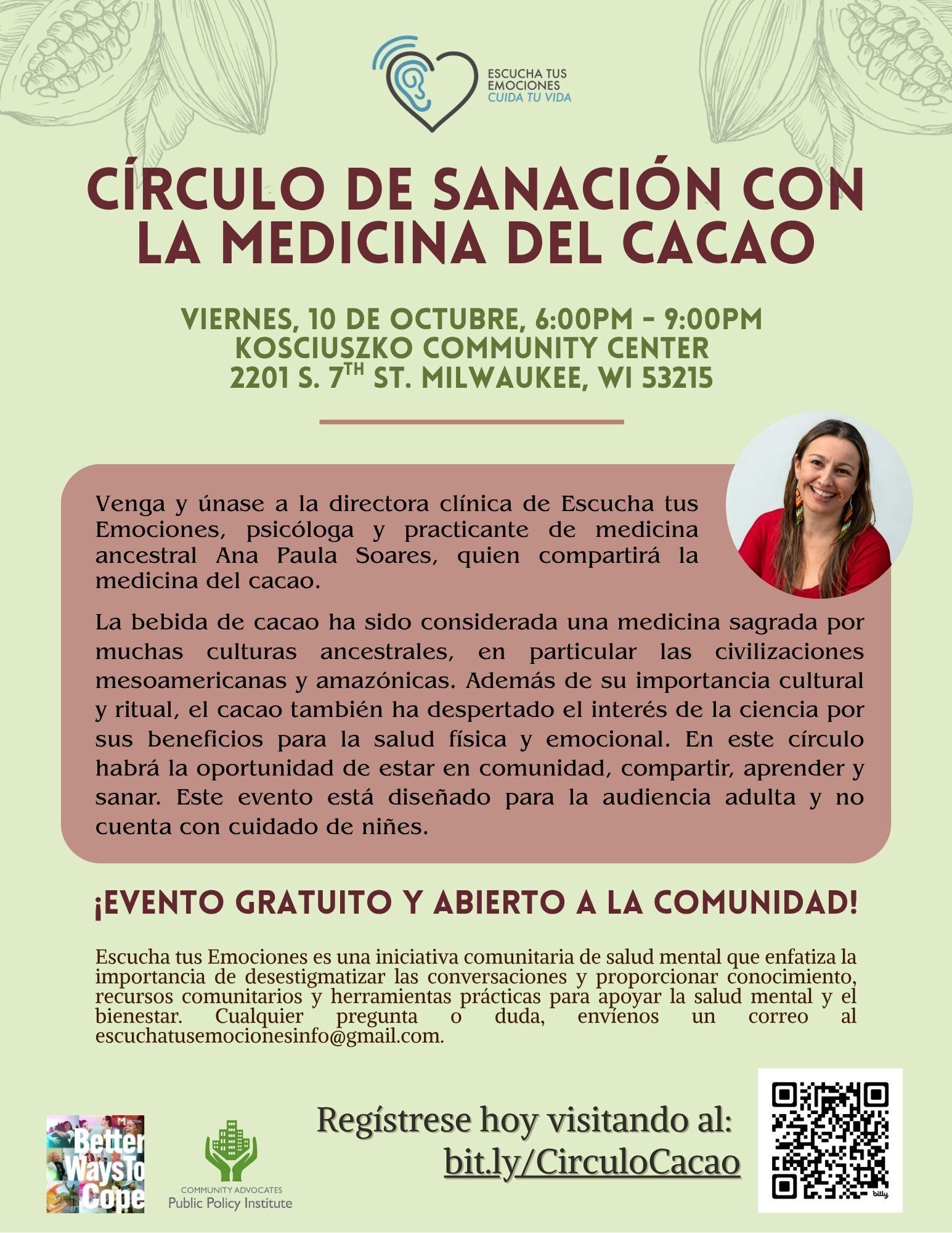 Este Círculo de Sanación es gratuito para la comunidad gracias al apoyo y financiación de Community Advocates y Better Ways to Cope.